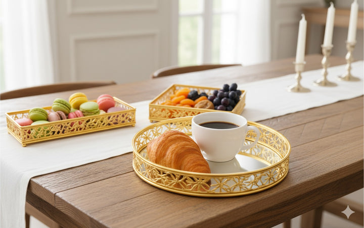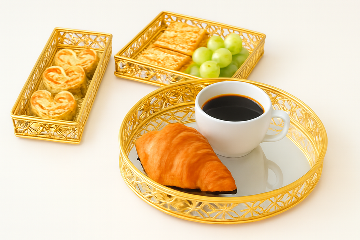 قوية ومتينة: صواني تقديم زخرفية متينة مثالية للاستخدام المنزلي اليومي أو في الحفلات.